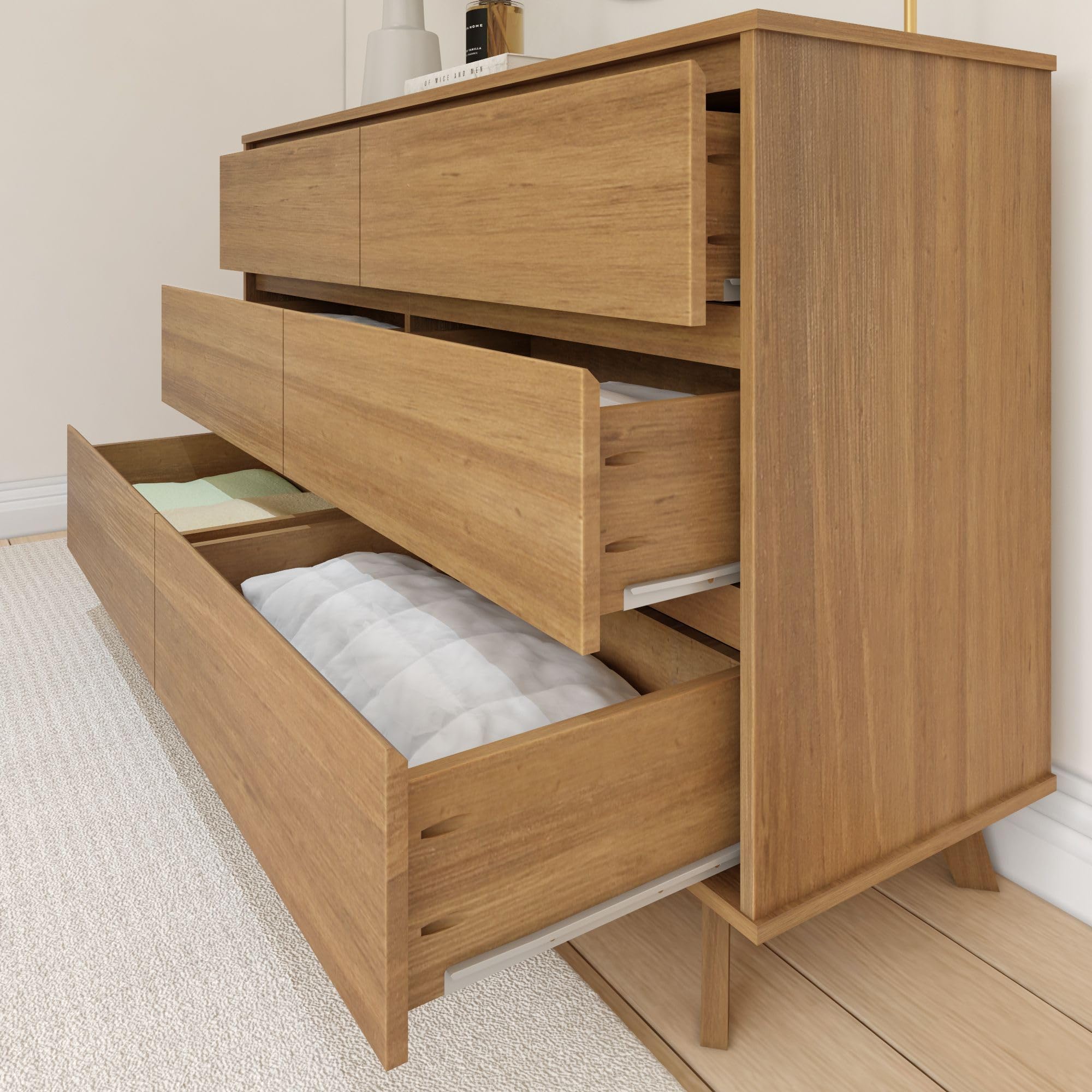 - Modern Dresser: Solid wood dresser features 6 spacious drawers to help organize all your everyday items; Scandinavian-inspired style features chic neutral finishes to showcase the natural wood grain and create a modern look