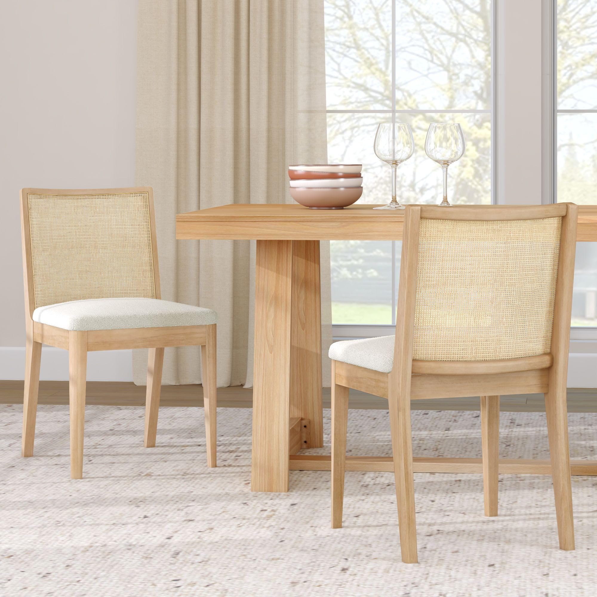 Plank+Beam Elio Dining Chair (2-Pack) - Rattan Back, Bouclé Upholstered Seat, Solid Rubberwood Frame, Low-VOC Finish, Easy Assembly, Blonde/Sesame
