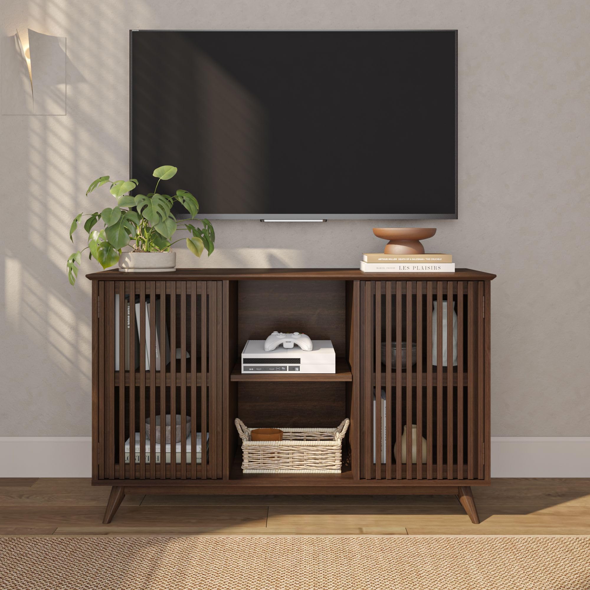 Plank+Beam Mid-Century Modern Wood TV Stand, Solid Wood Entertainment Console with Storage, 49" L x 16" W x 30" H, Walnut