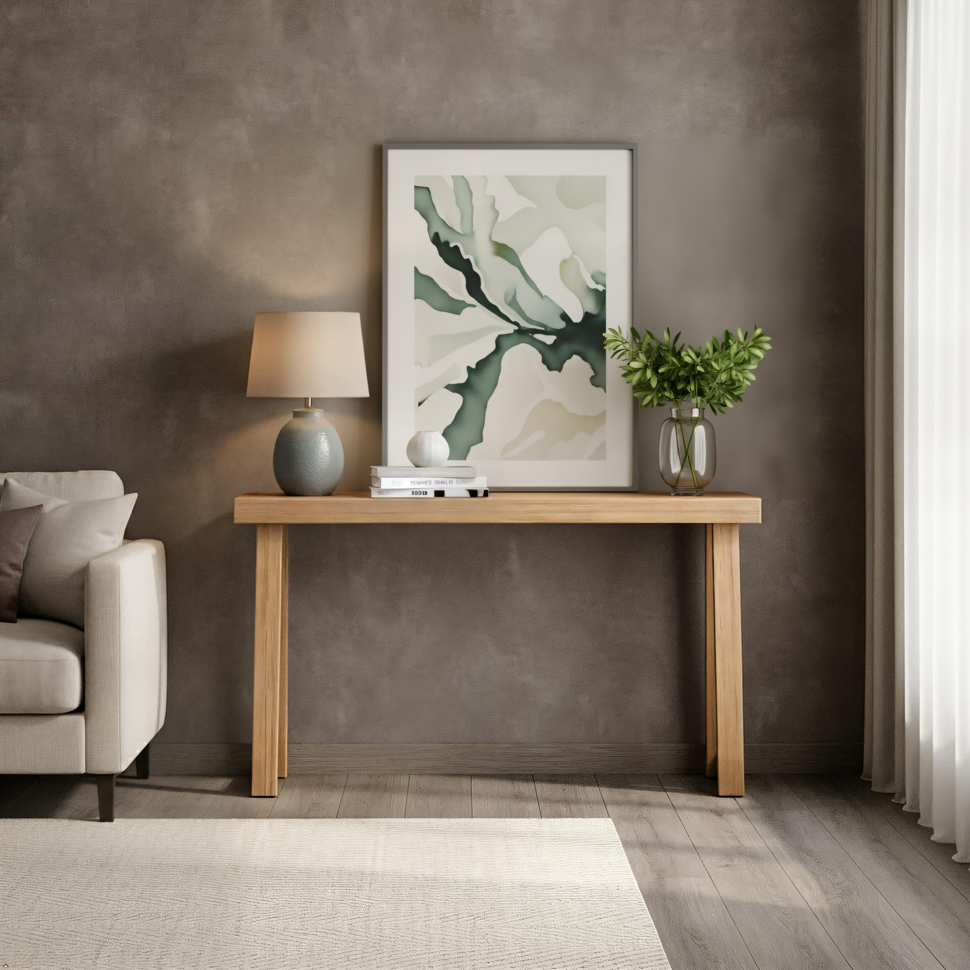 - Quality Wood Console Table: This classic console table is crafted with knot-free, solid pine wood for a premium look and exceptional durability; Sofa table features clean, non-toxic finishes to complement your healthy living space