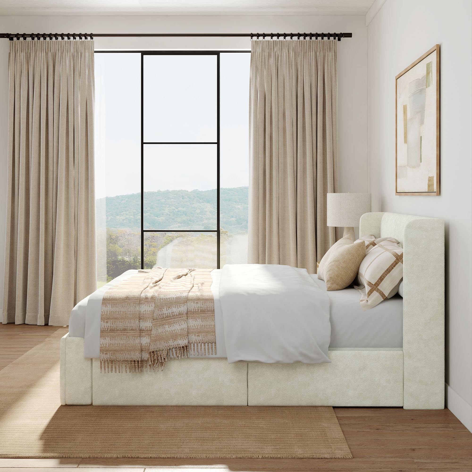 Plank+Beam Upholstered Full Bed Frame with Rectangular Headboard and Two Storage Drawers, Upholstered Platform Bed, No Box Spring Needed, Easy Assembly, Cream